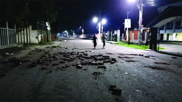 সীমিত আকারে রিকশা চলাচল করলেও ইজিবাইক বা কোনো যানবাহ চোখে পড়েনি। শহরের স্পর্শকাতর স্থানে ইট ভাঙ্গা, কাঠ, বাঁশ, টায়ার পুড়ানো ছাই দেখা গেছে। অনেক স্থানে সংঘর্ষে ব্যবহৃত সরঞ্জাম পড়ে ছিল। তবে রাতে শহরে আইন-শৃঙ্খলা বাহিনী চোখে পড়েনি।